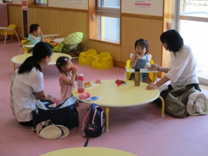 すまいるランド、あそぼっては、乳幼児が気軽に遊べるプレイルームや、土・日曜日、祝日に子どもを一時的に預かる休日一時保育などを行っている子育て拠点施設です。